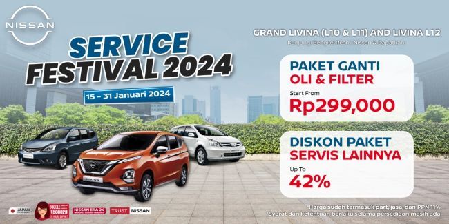Untuk bisa mendapatkan program, konsumen cukup mendatangi bengkel resmi Nissan yang tersebar di seluruh Indonesia pada periode 15 hingga 31 Januari. Penawaran tidak bisa digabungkan dengan promo lainnya di luar program Nissan Servis Festival - Grand Livina & Livina, dan selama persediaan masih ada.
