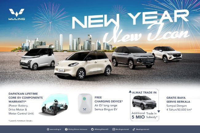 JAKARTA, Carvaganza - Wuling Motors ramaikan awal tahun baru dengan menghadirkan promo. Bertajuk ‘New Year, New Icon’, penawaran berlangsung hingga 31 Januari 2024 secara nasional. Program bertujuan untuk memudahkan sekaligus memberikan ketenangan bagi konsumen yang ingin memiliki mobil-mobil Wuling. Di mana mencakup tak hanya mencakup model bermesin konvensional, tapi juga pengguna listrik sepenuhnya.